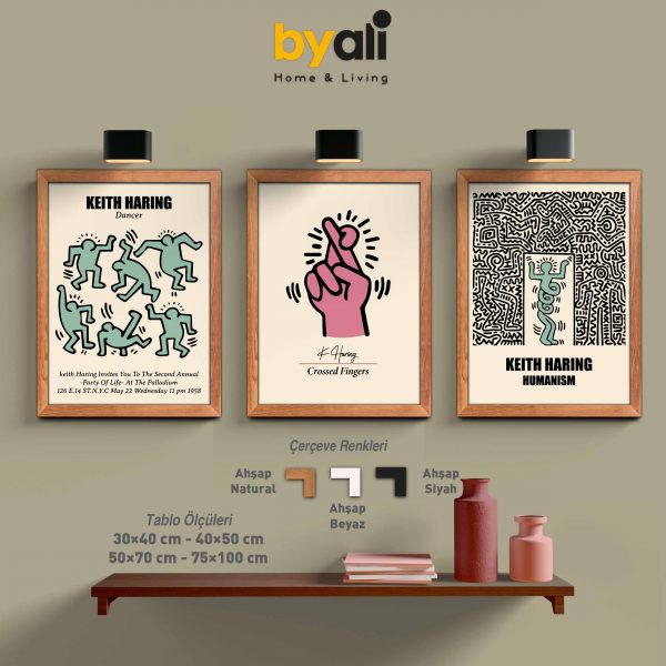 Ahşap Çerçeveli Keith Haring 3’lü Tablo Seti 3135