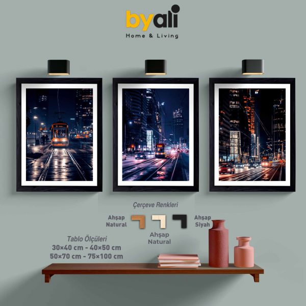 Ahşap Çerçeveli Metro 3’lü Tablo Seti F1014