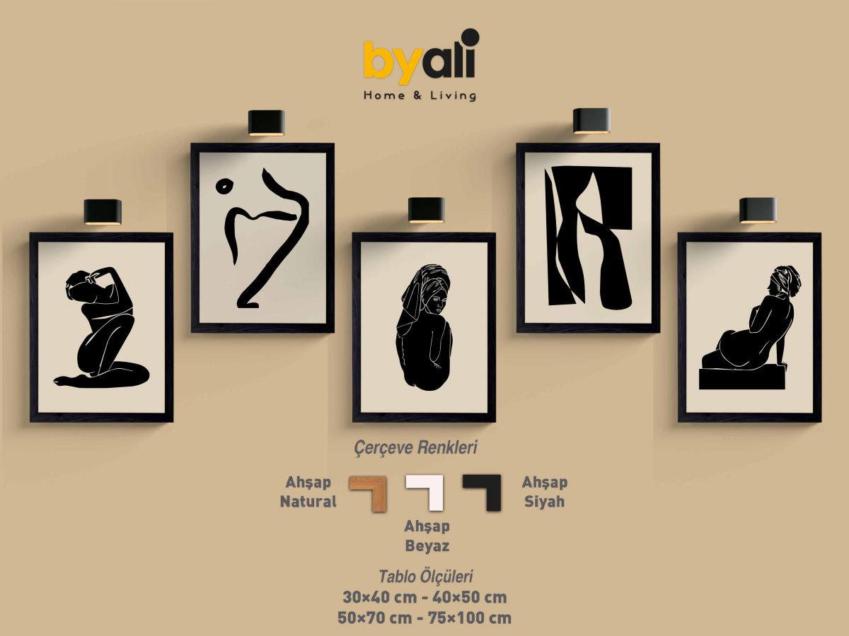 Ahşap Çerçeveli Black 5’li Tablo Seti 5007