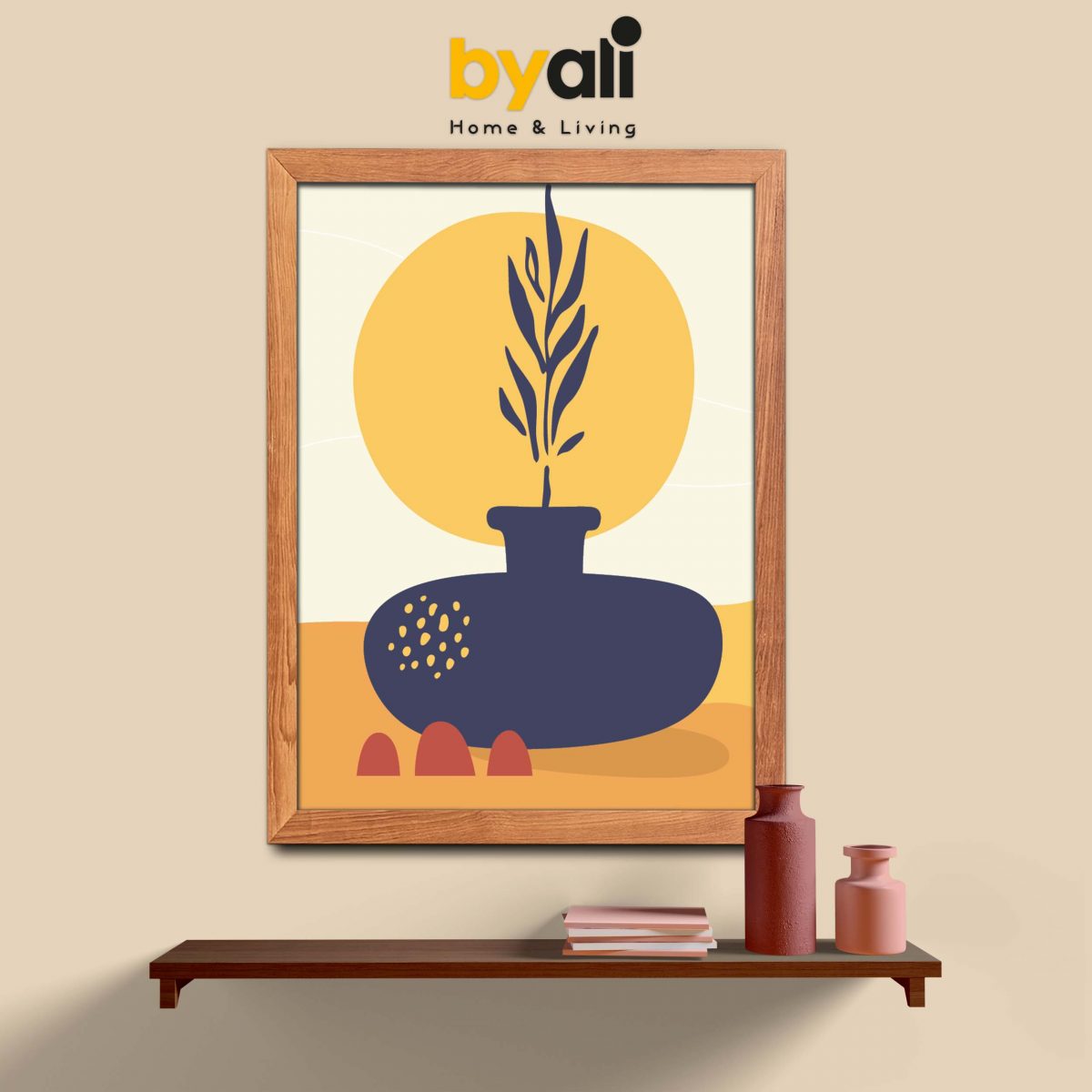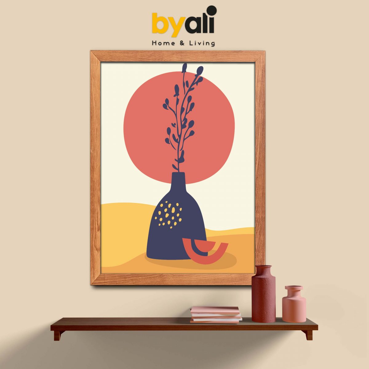 Ahşap Çerçeveli Mid-Century Modern 3'lü Tablo Seti