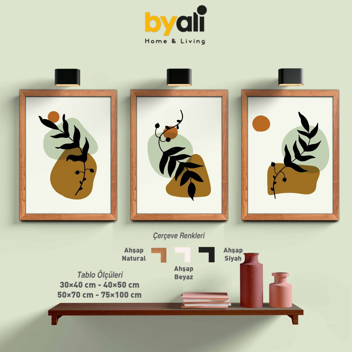 Ahşap Çerçeveli Leafs 3’lü Tablo Seti 3034