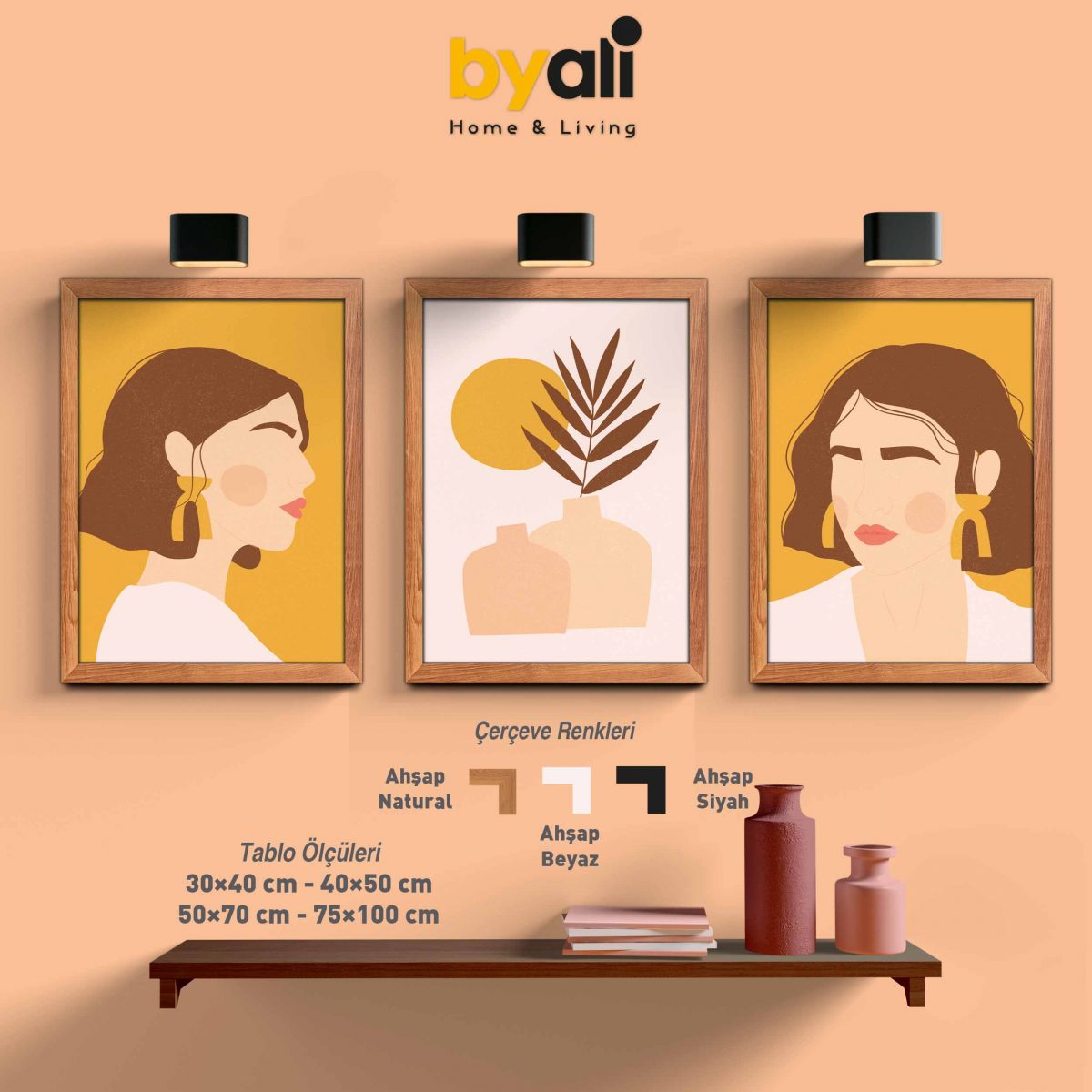 Ahşap Çerçeveli Mid century 3’lü Tablo Seti 3039