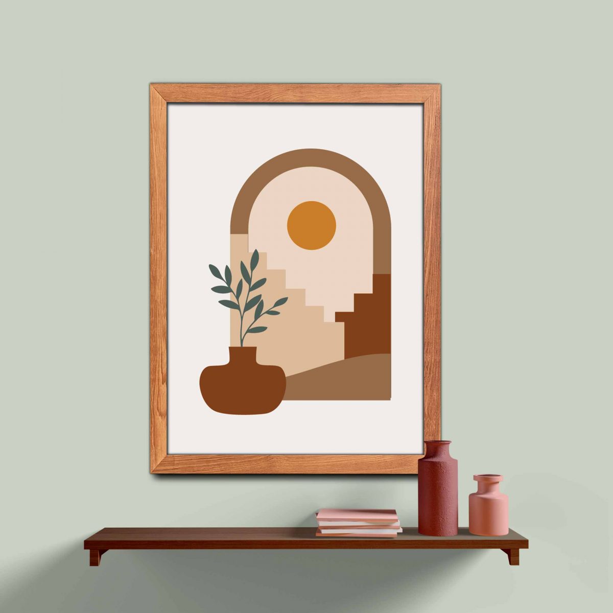 Ahşap Çerçeveli Mid century 3’lü Tablo Seti 3040