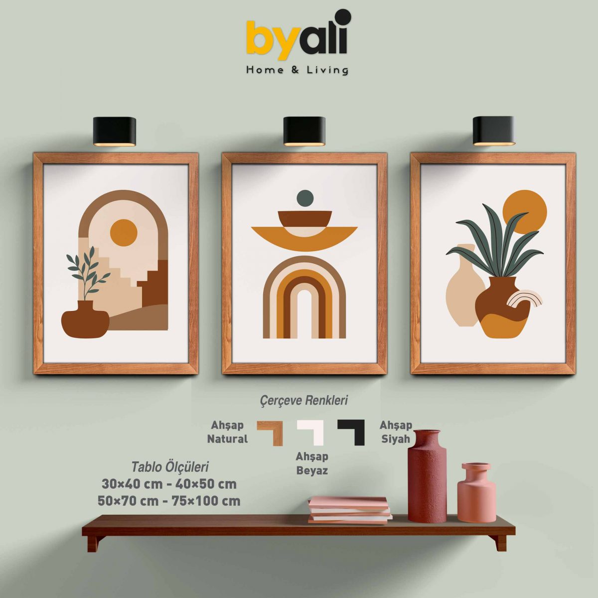 Ahşap Çerçeveli Boho 3’lü Tablo Seti 3021