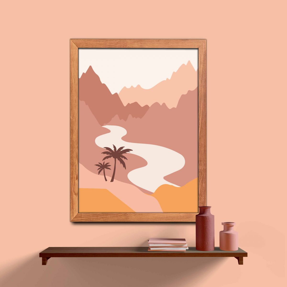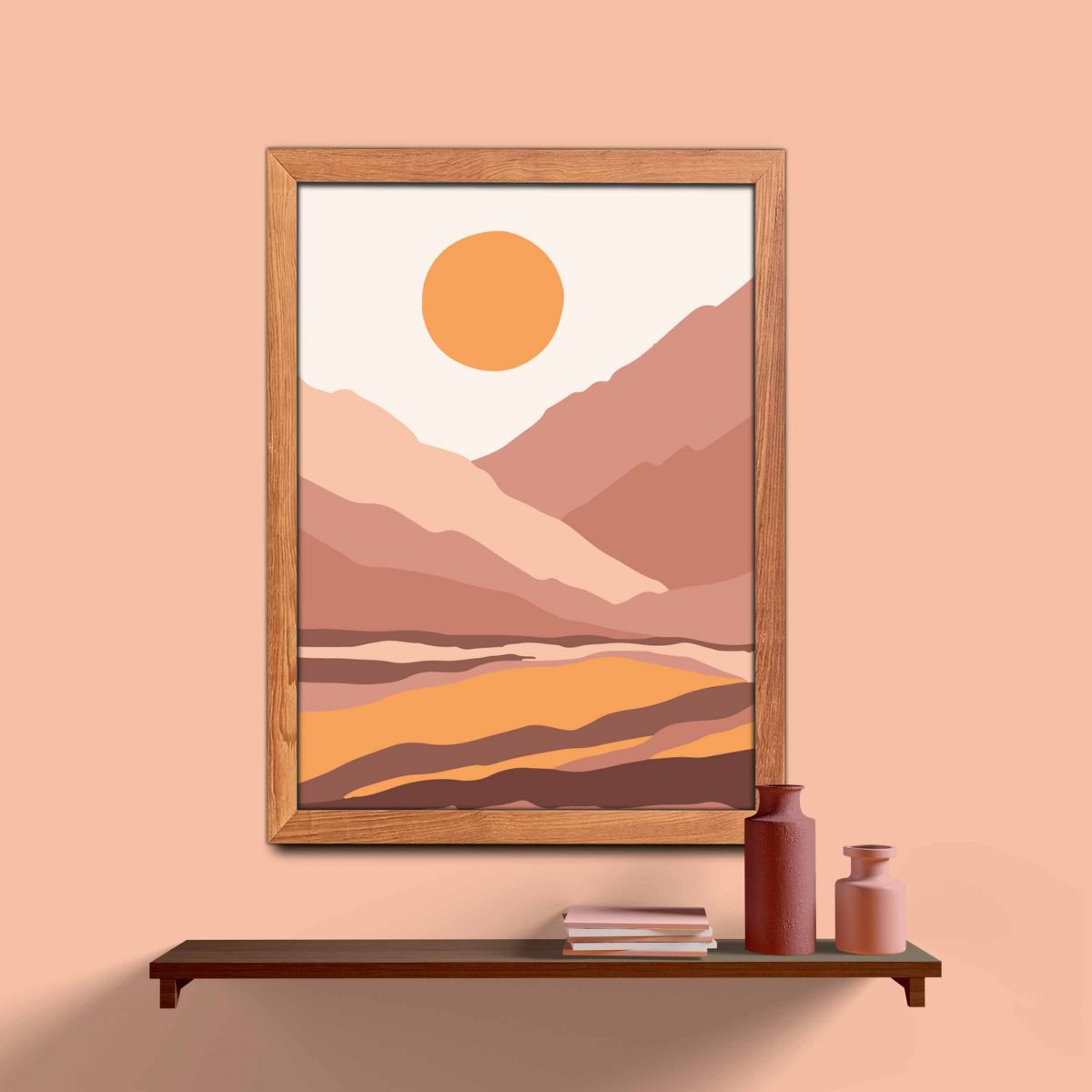 Ahşap Çerçeveli Mid century 3’lü Tablo Seti 3039