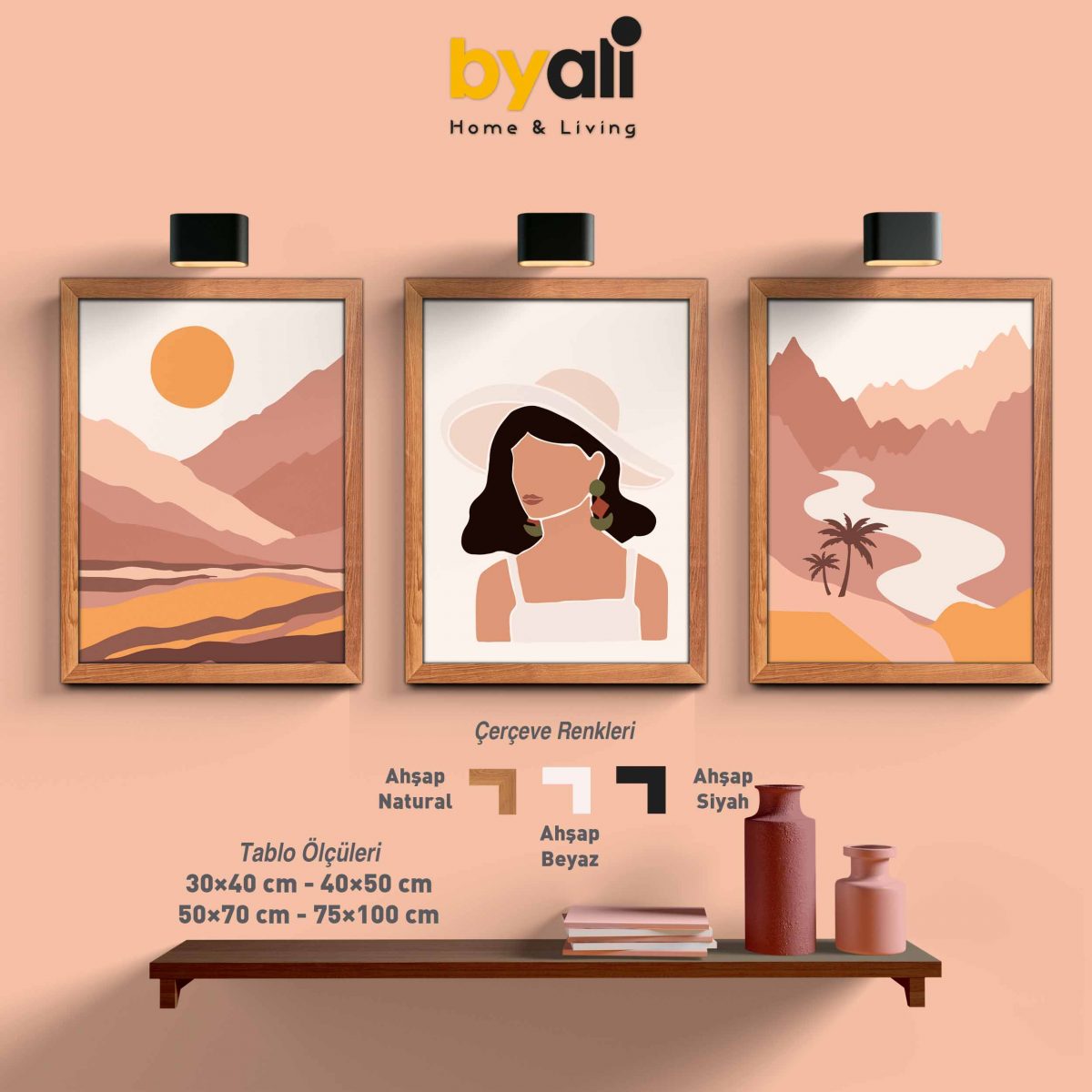 Ahşap Çerçeveli Boho 3’lü Tablo Seti 3095