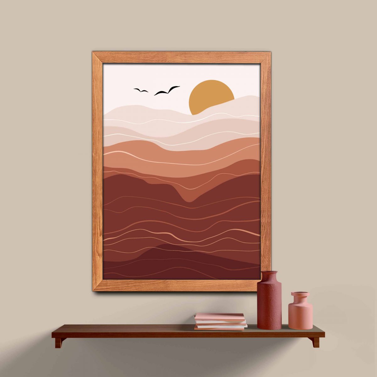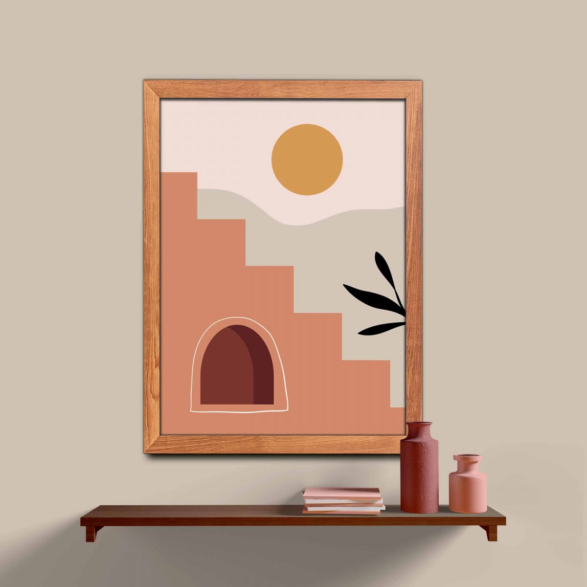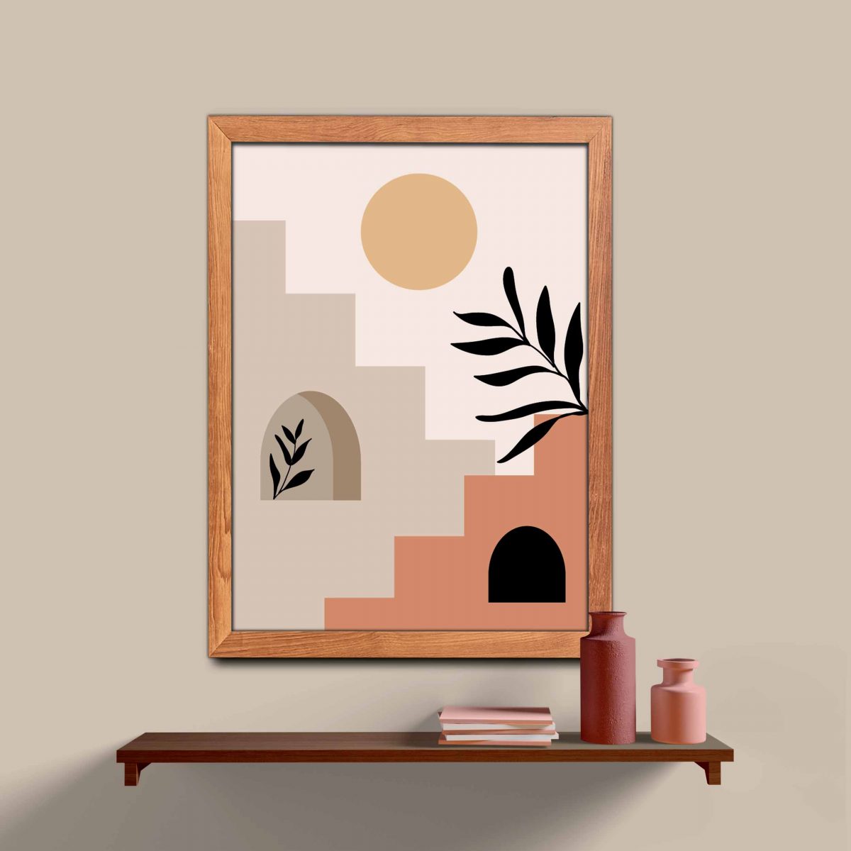 Ahşap Çerçeveli Mid century 3’lü Tablo Seti 3040