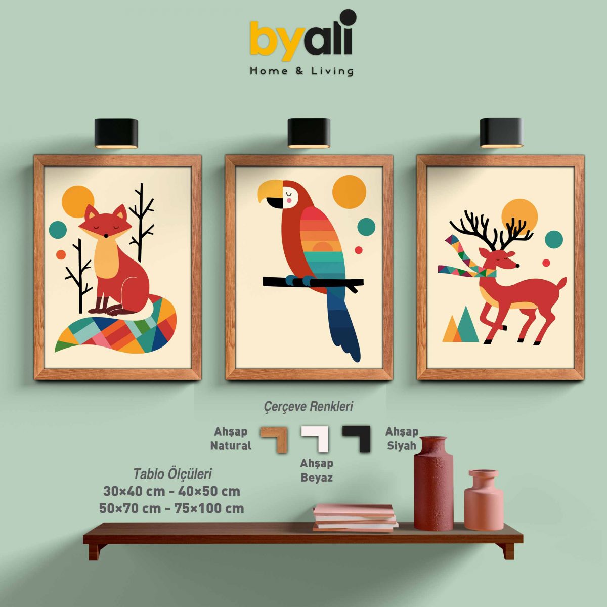 Ahşap Çerçeveli Çocuk Odası 3’lü Tablo Seti C3001