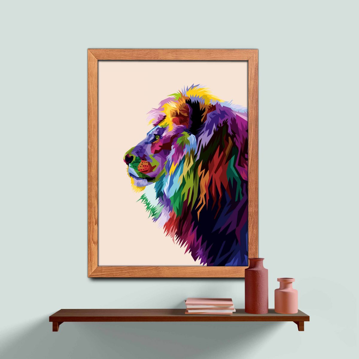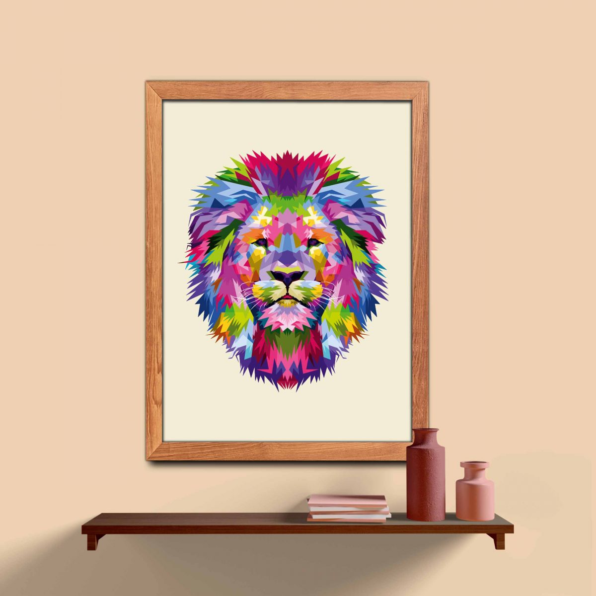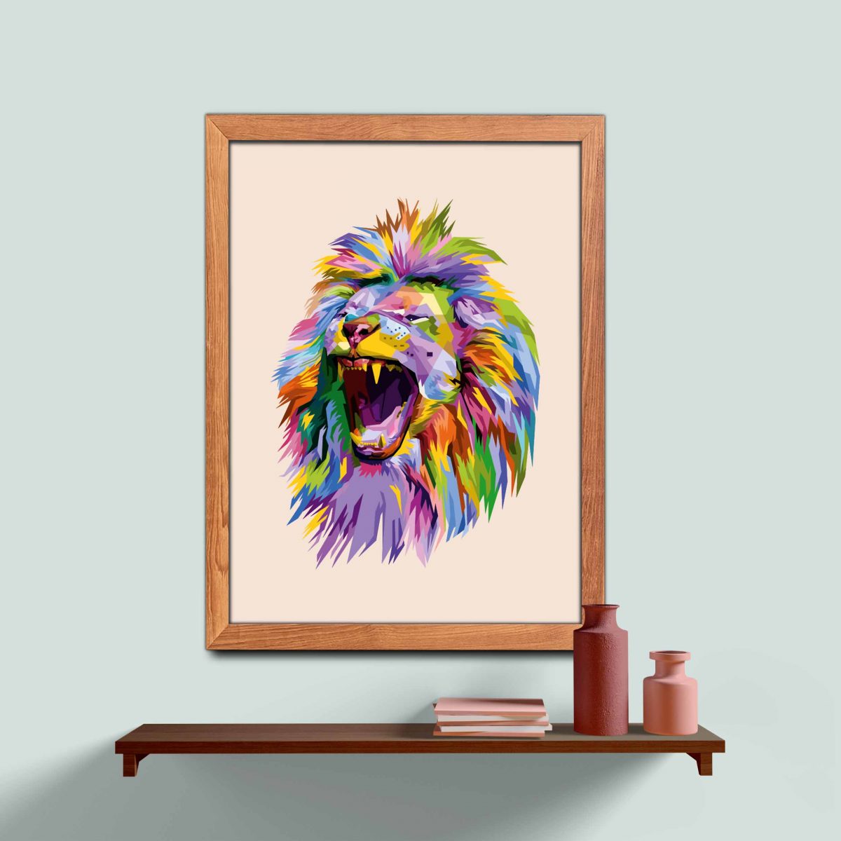 Ahşap Çerçeveli colorful lion head 4’lü Tablo Seti 4007