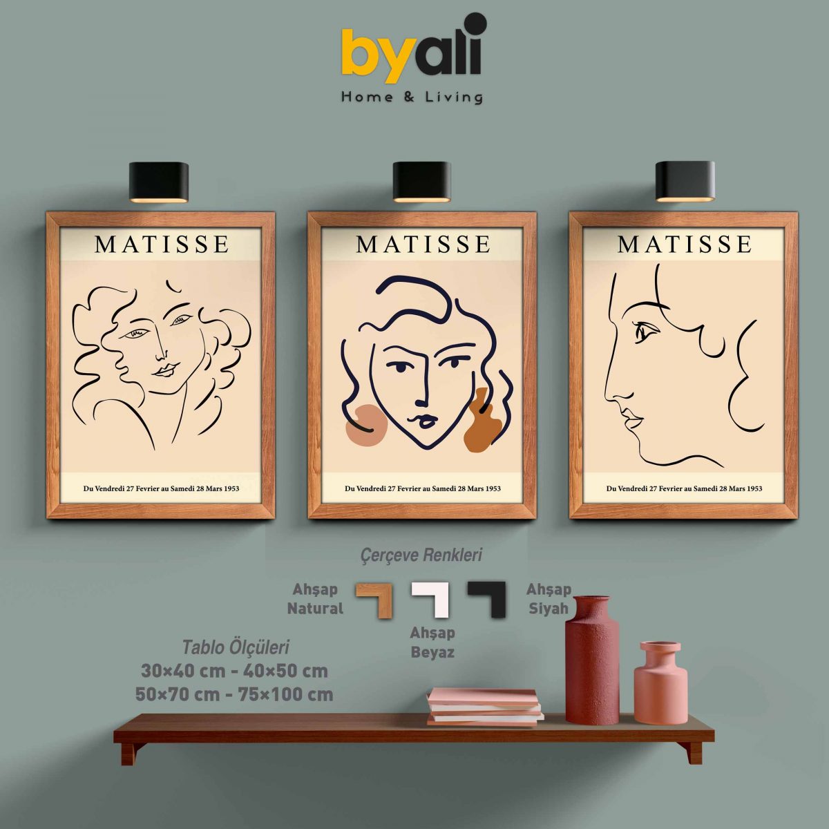 Ahşap Çerçeveli Matisse 3’lü Tablo Seti 3016