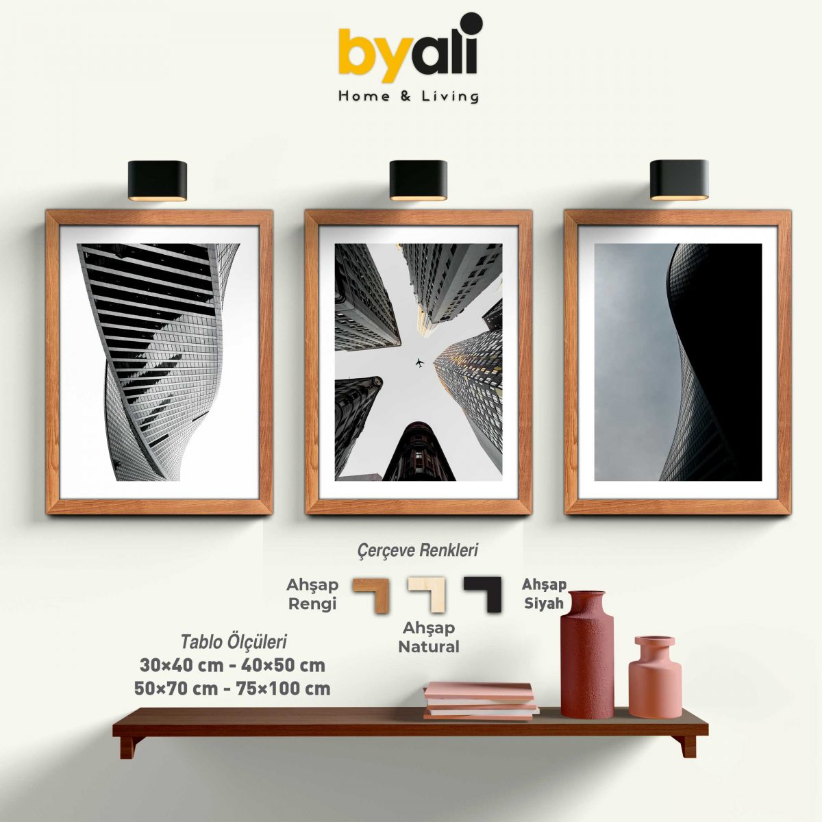 Ahşap Çerçeveli Mimar 3’lü Tablo Seti F1007