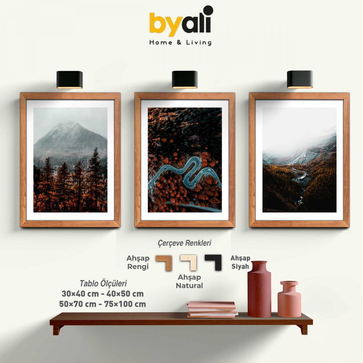 Ahşap Çerçeveli landscape 3’lü Tablo Seti 3037