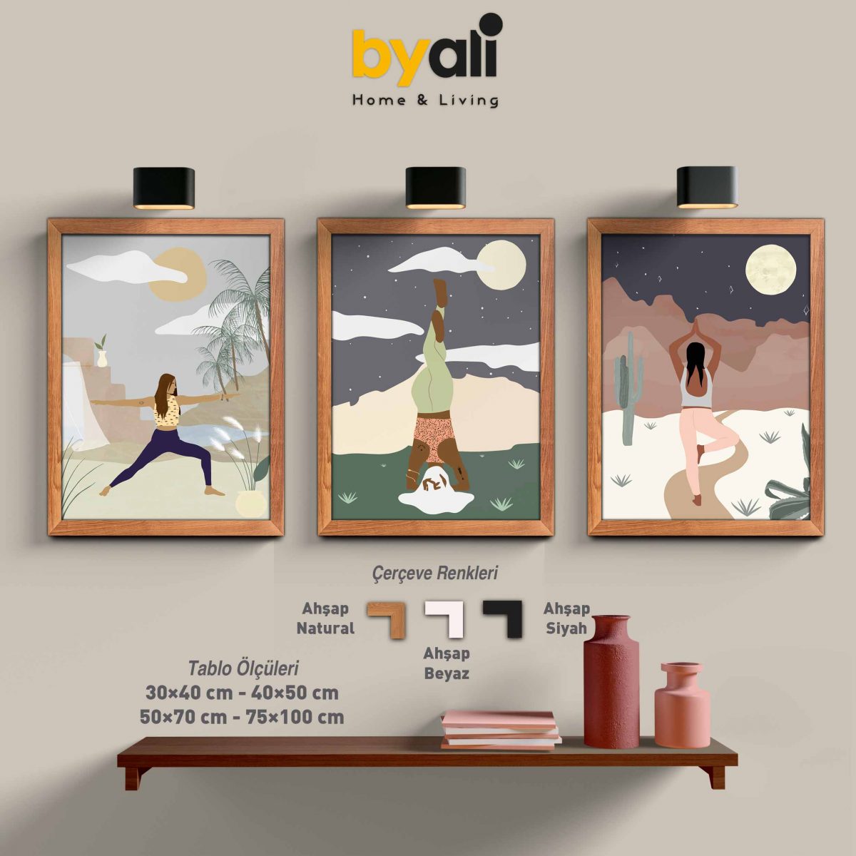 Ahşap Çerçeveli Yoga 3’lü Tablo Seti 3043