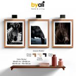 Ahşap Çerçeveli Mid century 3’lü Tablo Seti 3040