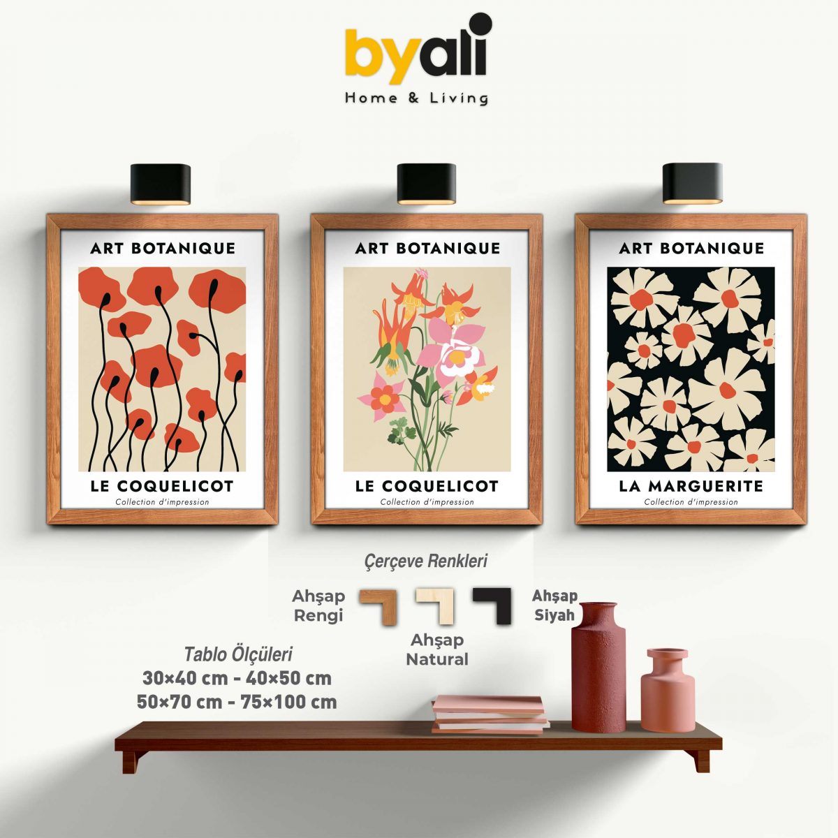 Art Botanique Ahşap Çerçeveli 3’lü Tablo Seti – 3336