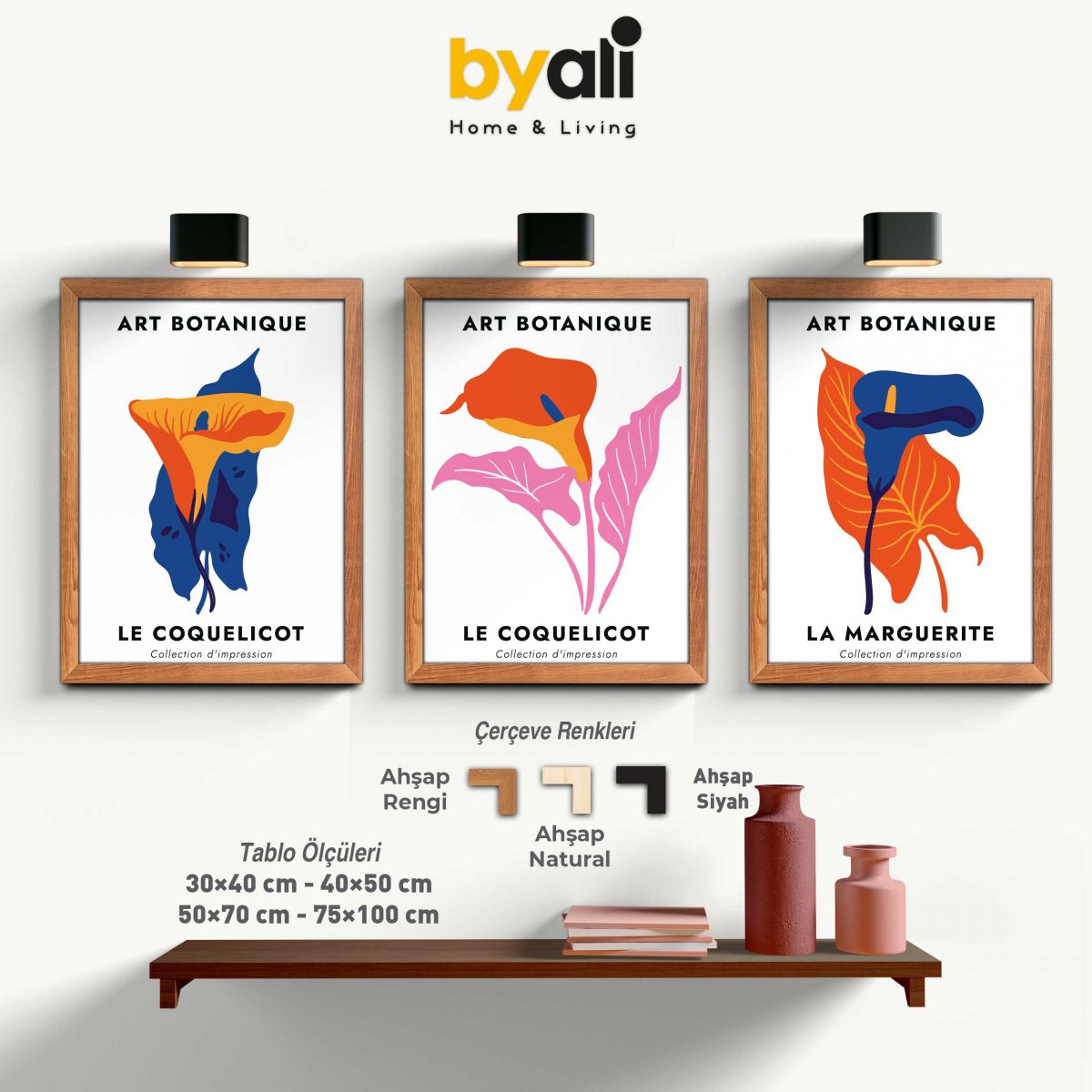Art Botanique Ahşap Çerçeveli 3’lü Tablo Seti – 3338