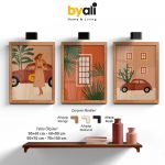 Ahşap Çerçeveli Mid century 3’lü Tablo Seti 3040