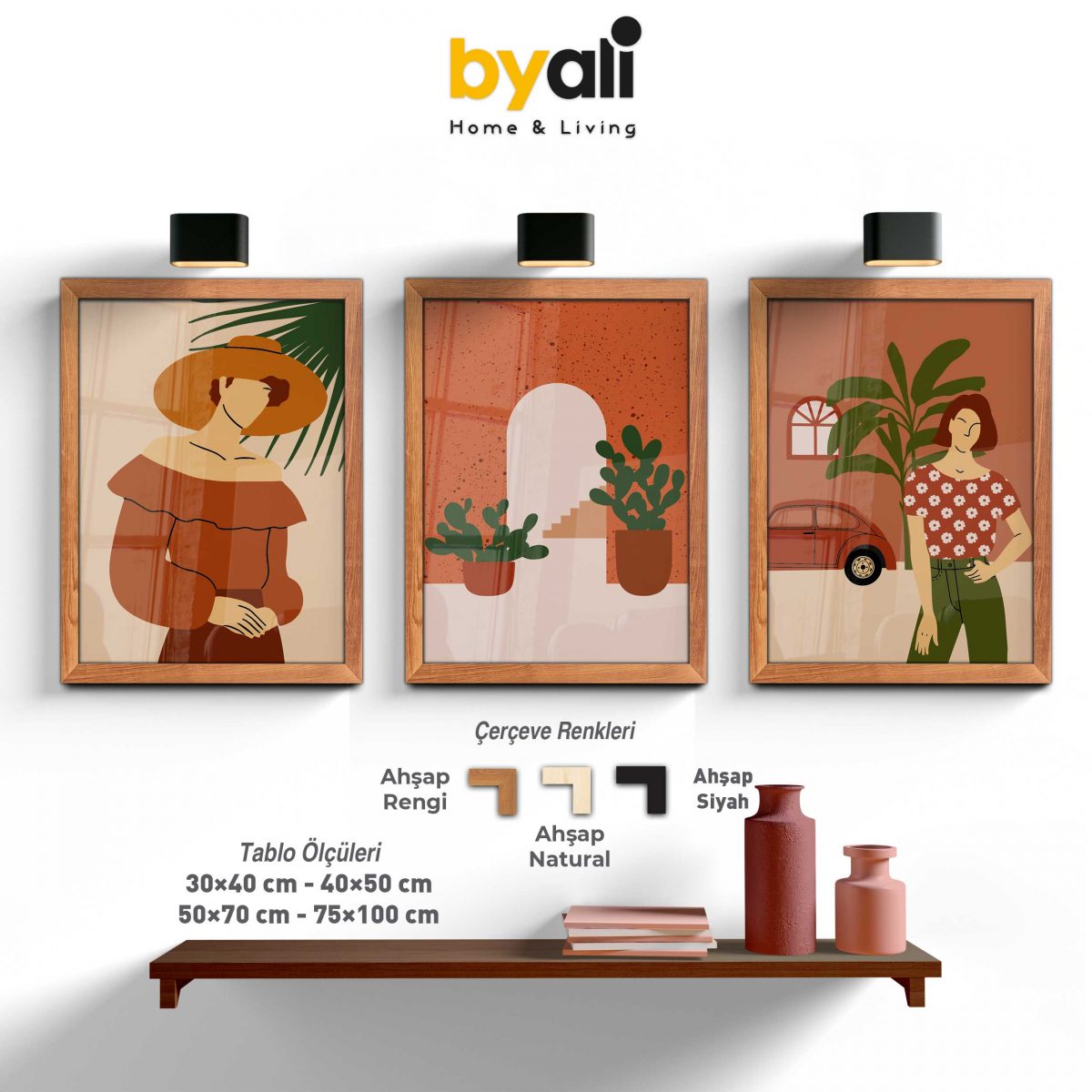 Ahşap Çerçeveli Mid century 3’lü Tablo Seti 3040