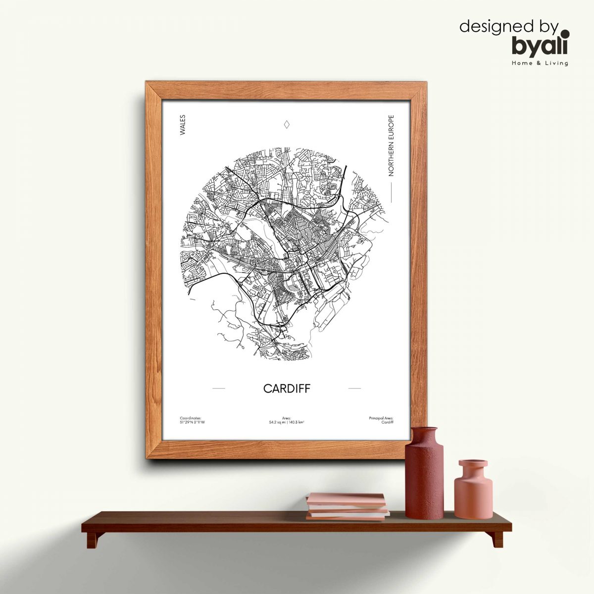 Cardiff Map Ahşap Çerçeveli Tablo CM1037