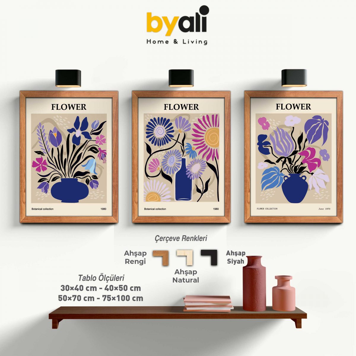 Flower Ahşap Çerçeveli 3’lü Tablo Seti - 3335 Fiyat aralığı: ₺2,376.00 - ₺8,640.00