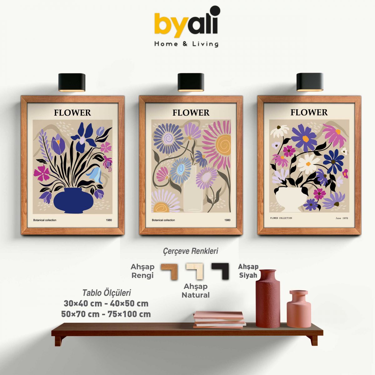 Flower Ahşap Çerçeveli 3’lü Tablo Seti – 3335