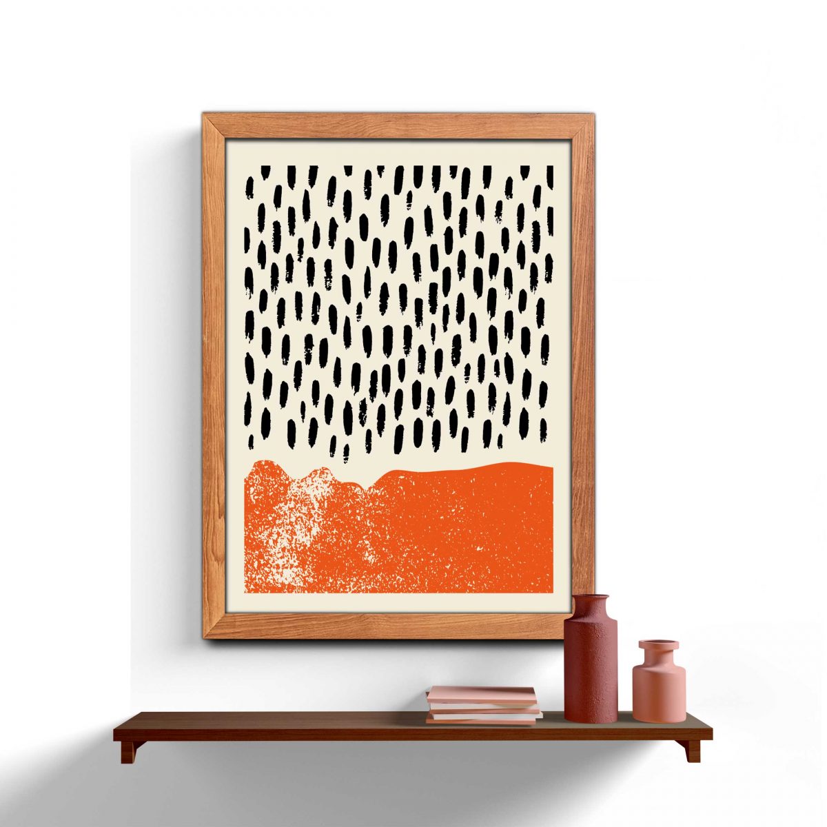 Ahşap Çerçeveli Geometric Turuncu 3’lü Tablo Seti 3026