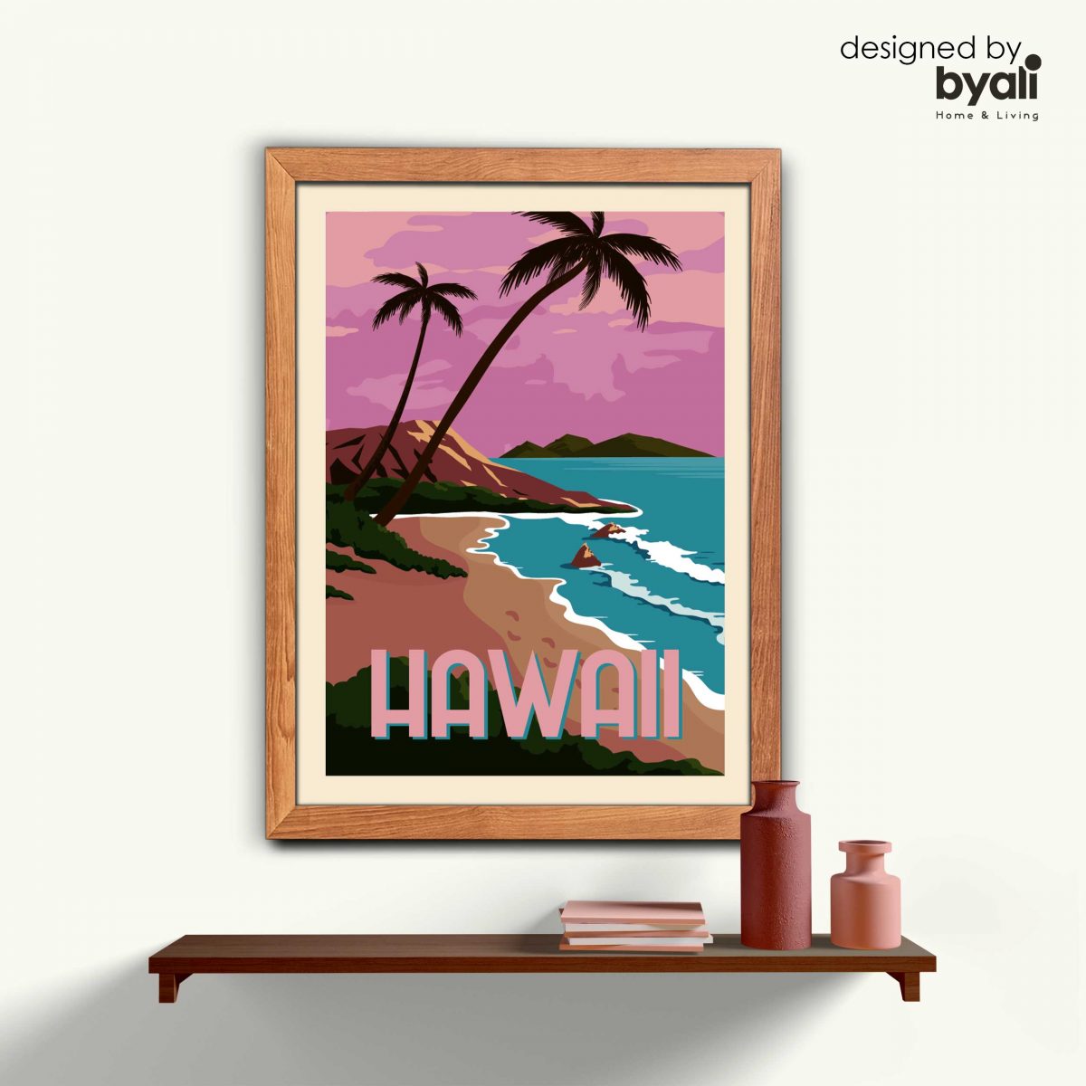 Hawaii Retro Şehir Ahşap Çerçeveli Tablo CR 1119