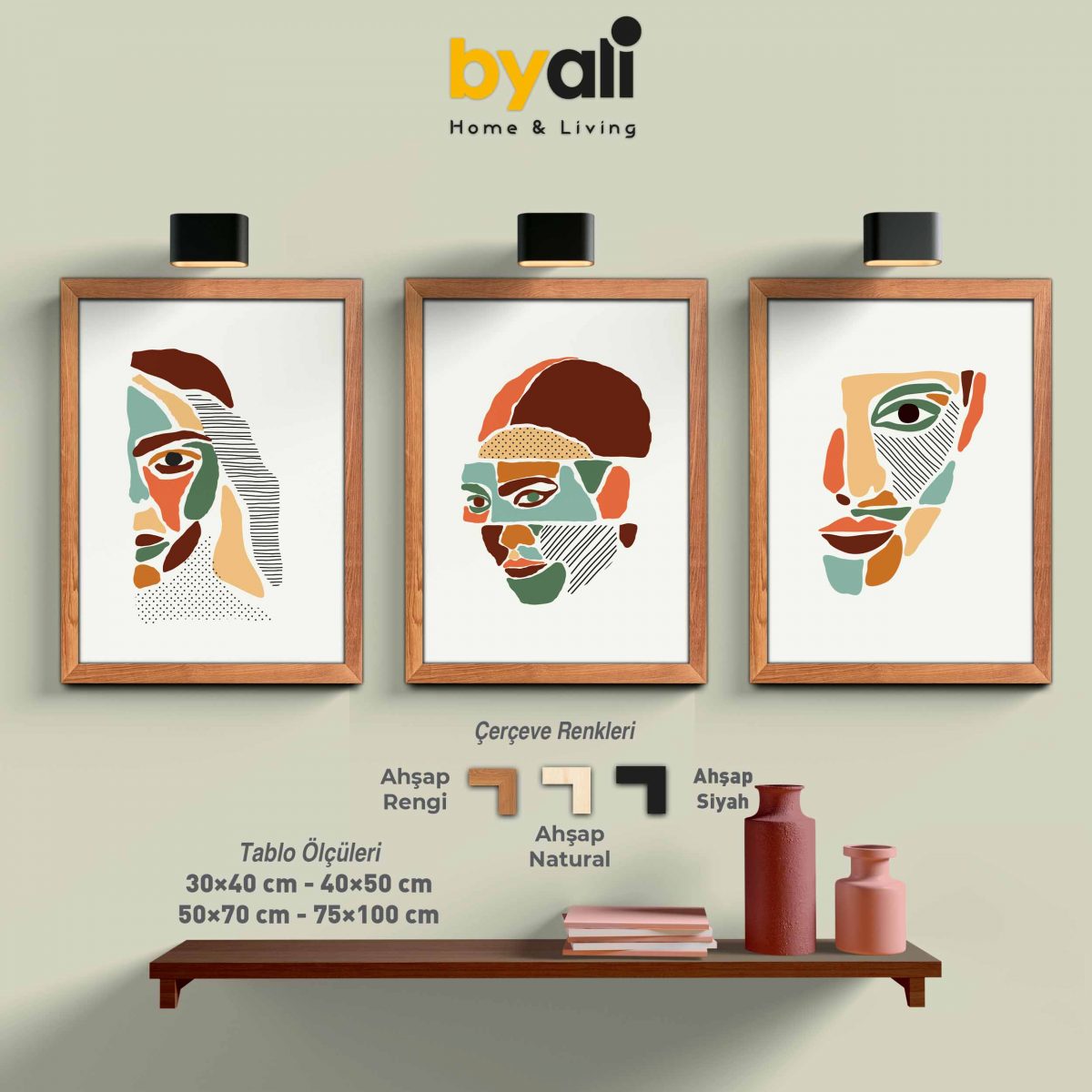 Minimalist Ahşap Çerçeveli 3’lü Tablo Seti 3165