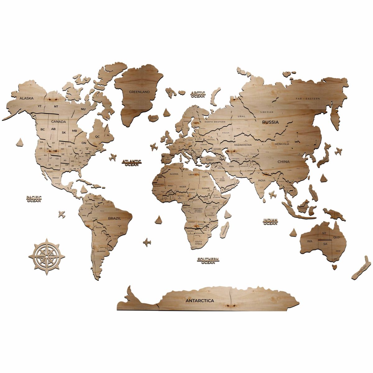 Natural Ahşap Detaylı Dünya Haritası 3 Katman