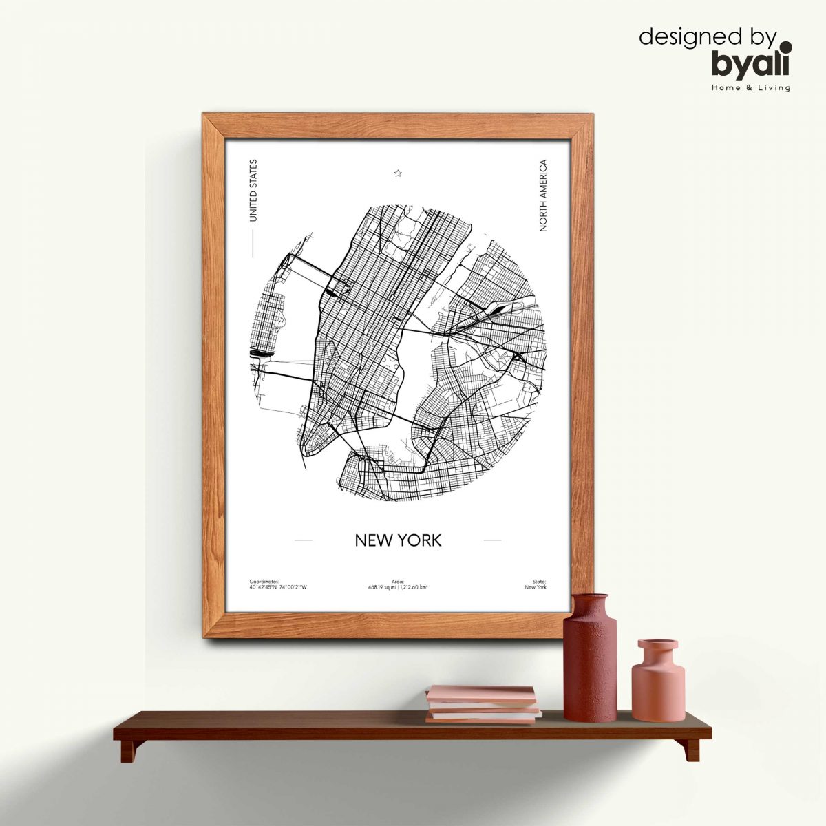 New York Map Ahşap Çerçeveli Tablo CM1013
