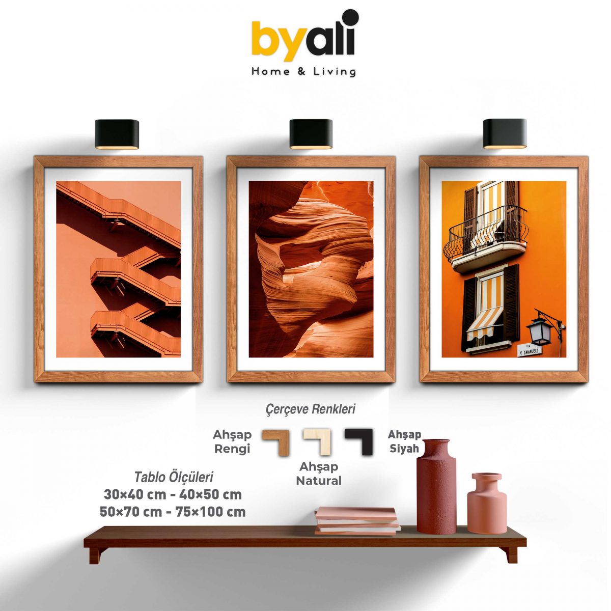Ahşap Çerçeveli Mid century 3’lü Tablo Seti 3039