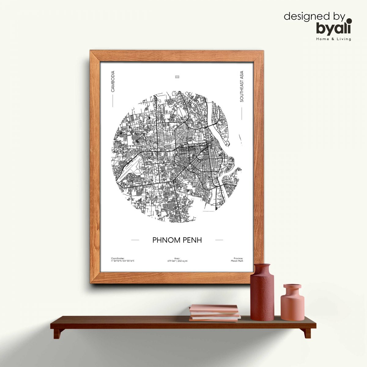 Phnom Penh Map Ahşap Çerçeveli Tablo CM1034