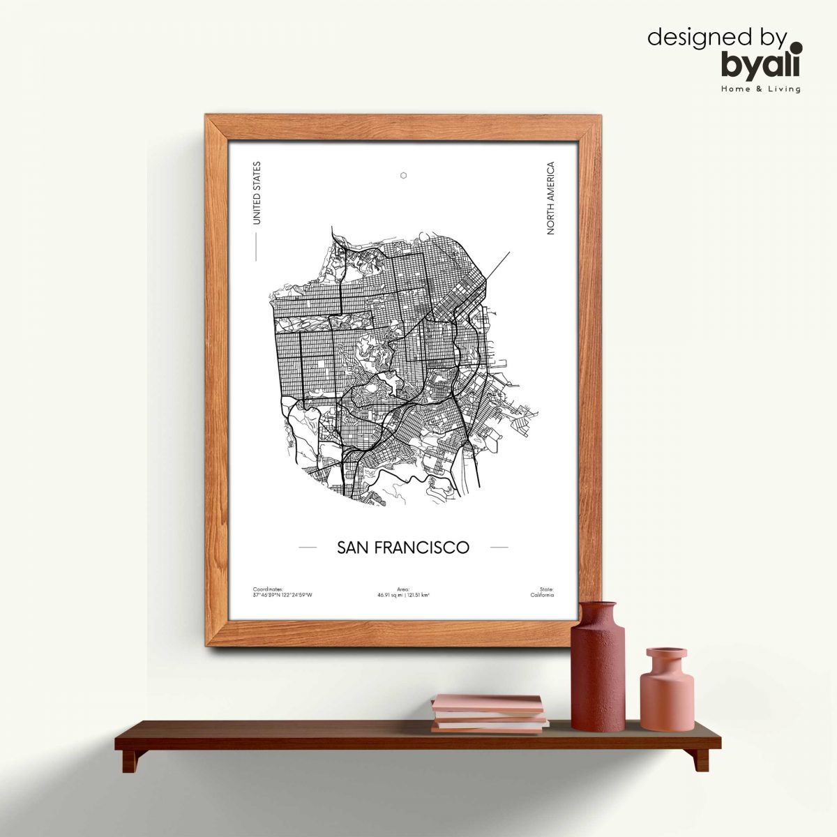 San Francisco Map Ahşap Çerçeveli Tablo CM1012