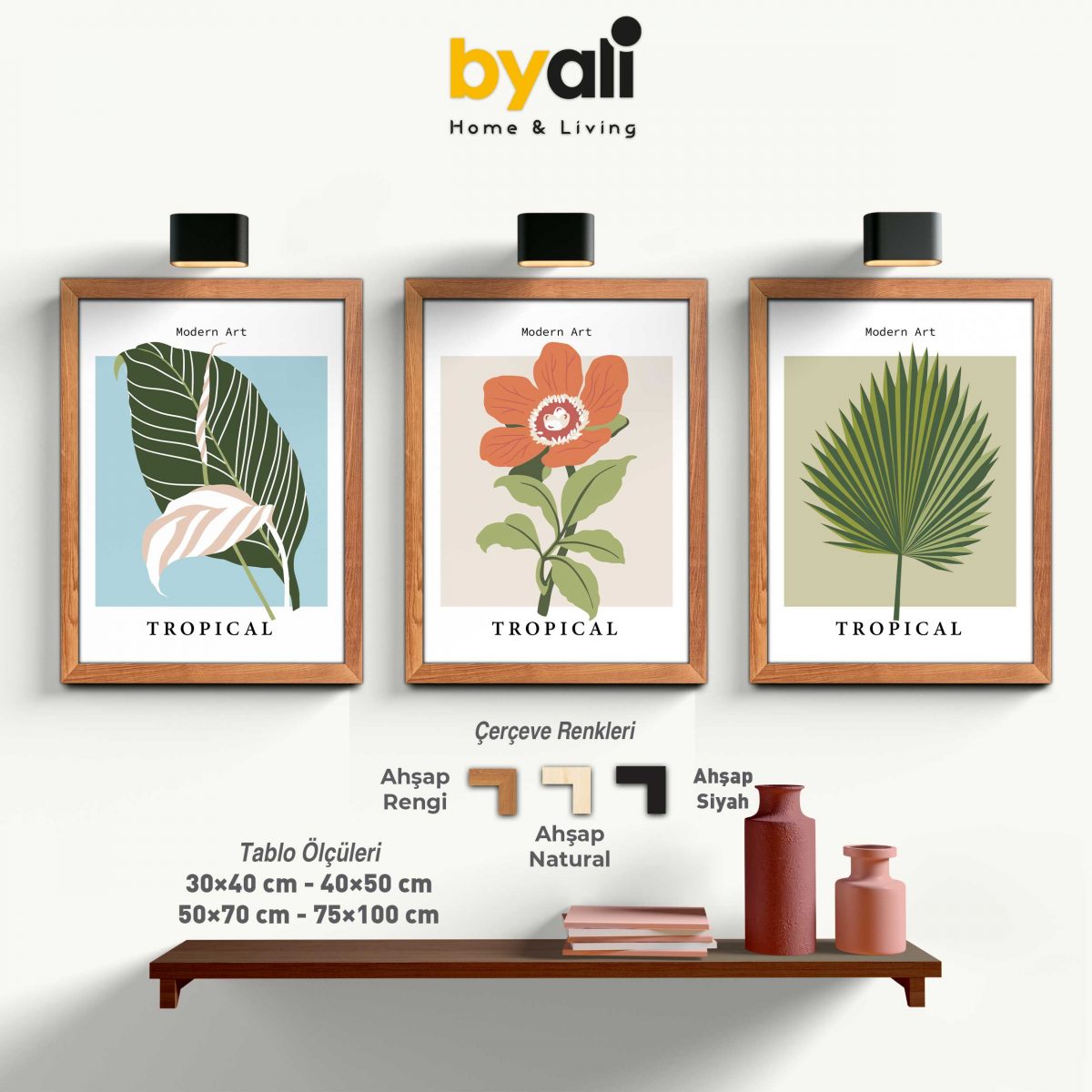 Tropical Modern Art Ahşap Çerçeveli 3’lü Tablo Seti - 3344