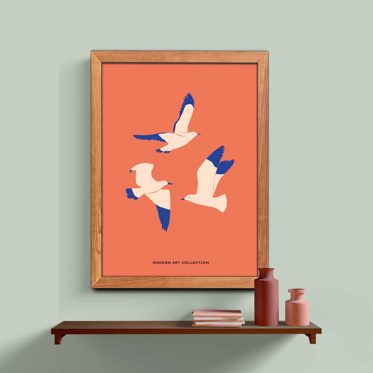 Ahşap Çerçeveli Mid century 3’lü Tablo Seti 3039